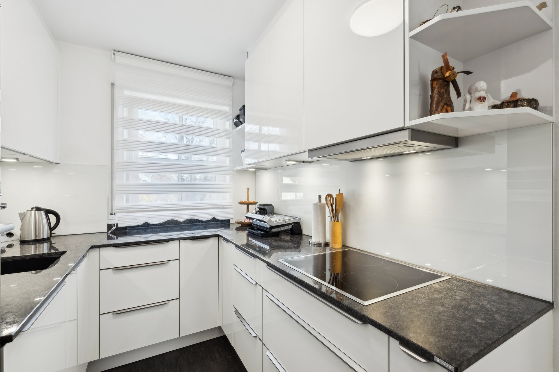 + Designbad neuwertig und schick + neuwertige Einbauküche mit Granitplatte und hochwertigen Markengeräten ( gegen Ablöse ) + Speise-/Vorratskammer + Tiefgaragenstellplatz + Kellerabteil